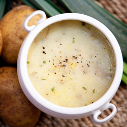 Beer should not be green. I firmly believe this. I support the right to party in a “Kiss Me I’m Irish” t-shirt, but I’m skipping the green beer this year. Instead I’m opting to celebrate St. Patrick’s Day with Potato Leek Soup. Hearty Irish food without the weird green food coloring. I must be getting old :)
