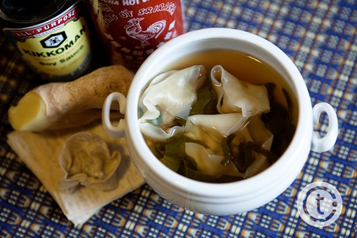 Nothing makes a new apartment feel like home quite like the smell of fresh boiling soup. In this case, it was our new apartment in Uptown (which we moved into this past Wednesday), and a boiling pot of Wonton Soup. Fragrant ginger, soy and chili sauces finally overpowered the less pleasant aromas of still drying floor varnish and fresh paint. I feel more settled now knowing that I’ve cooked something delicious in our new kitchen.