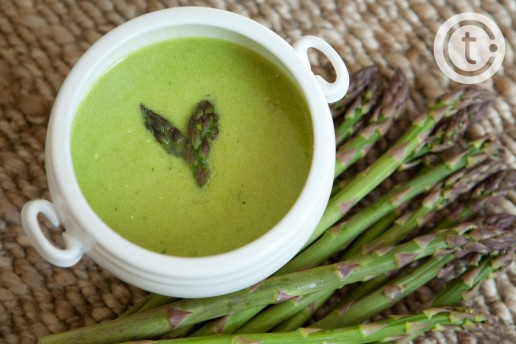 Hallelujah, the farmer’s market is back! I was so excited for the first one of the season last Saturday that I showed up 15 minutes early. Yes, I am a produce nerd. It was freezing cold (what the what, May), and only one guy had anything local to offer ’cause it’s still early in the growing season here. But what he did have to offer was asparagus that he’d picked Friday afternoon. Score! Fresh, local asparagus is heavenly. I almost didn’t want to use any of my stash up in soup, but this recipe lets the natural flavor shine. Yummilicious. So excited for more fresh produce soups!