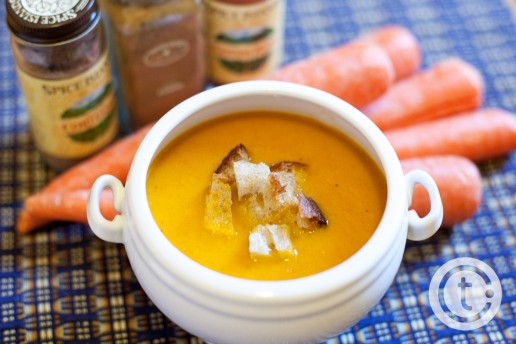 Spicy Carrot Soup with Garlic Croutons