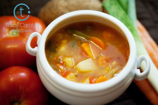 You won’t impress anyone with this soup. There’s no fancy ingredients, no crazy technique. It’s just a basic, classic, vegetable soup. A really delicious one. Despite the name, none of the ingredients in this soup actually came from my garden. It’s more like Farmer’s Market Vegetable Soup. But you get the idea. I think the key to getting such great flavors is using fresh seasonal veggies. I don’t recommend scrimping and going frozen on anything – including the corn – it’s worth it to use the real thing.
