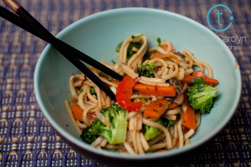 I’m trying to make it through the Year of the Noodle without gaining 10lbs. I feel as though this is a realistic goal. But so many (vegetarian) noodle recipes revolve around cheese, cream, butter and eggs. Not the healthiest. After last week’s heavy pumpkin and ricotta dish, I needed the balance of a lighter Asian dish. Preferably one with lots of fresh vegetables. And thus, Japanese Pan Noodles.