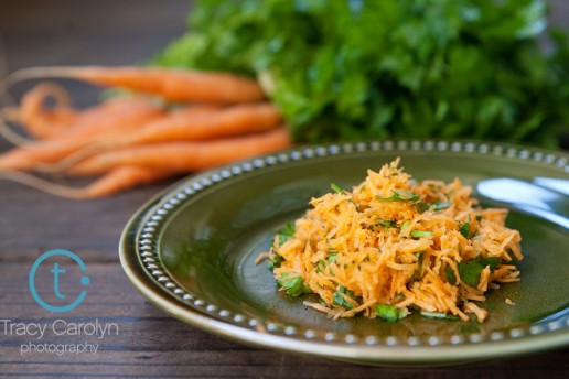 When carrots smell and taste this fresh, you hardly need much to dress them up into a tasty dish.  I chose this recipe because it keeps it simple – and lets the carrot flavor really shine.  The recipe mostly relies on lots of sampling to get the flavors correct.  Sample away – carrots are good for you :)  And mighty tasty this time of year, too.