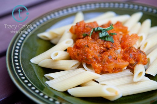 I’ve been waiting all year for tomato season so that I could make homemade sauce. It didn’t seem right to start making tomato based pasta sauces until the fresh tomatoes were ready. I know that canned tomatoes do wonderful things, but I wanted to really start from scratch. This sauce turned out pretty good, although basic, and it was eaten pretty fast so I’m going to assume that means it was a winner. Beware that you need to parboil and peel the tomatoes before you puree them, so give yourself some extra time to make this one. Enjoy!