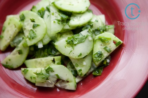 So I present to you the 11th recipe I’ve made from this book. I love marinated cucumbers, so adding cilantro (another love of mine) seemed like a logical next step. This would probably be better in the summertime when fresh and crisp salads rule the day, but it adds a nice freshness to the roasted vegetables and winter squash of the fall. It also goes well with soup and a grilled cheese. Enjoy!