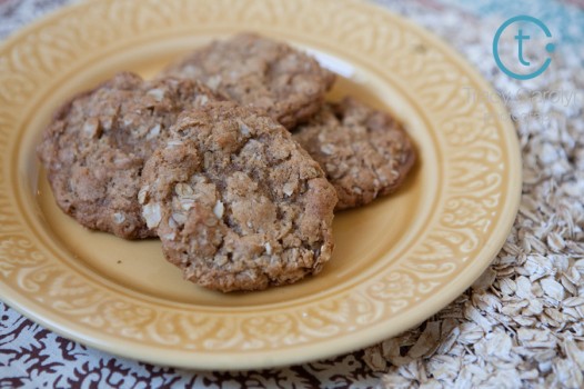 Combine flour, cinnamon, baking soda,and salt. Stir into the creamed mixture. Mix in oats. If you are using nuts or raisins, mix into dough, combining well. Cover, and chill dough for at least one hour.